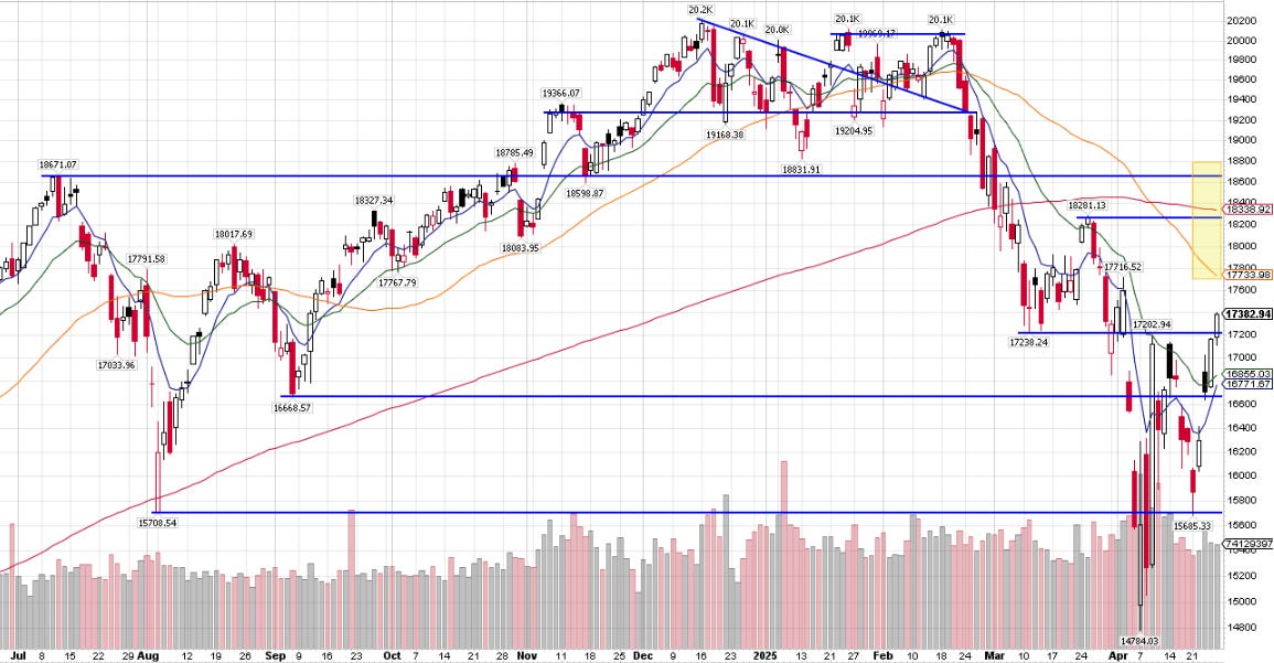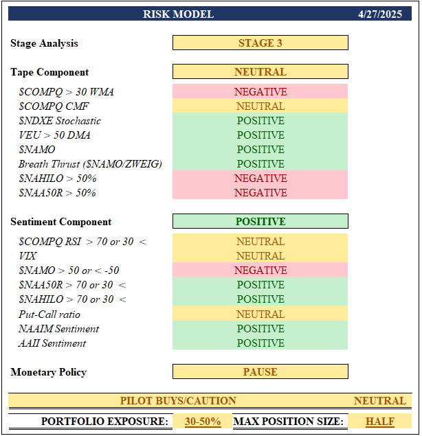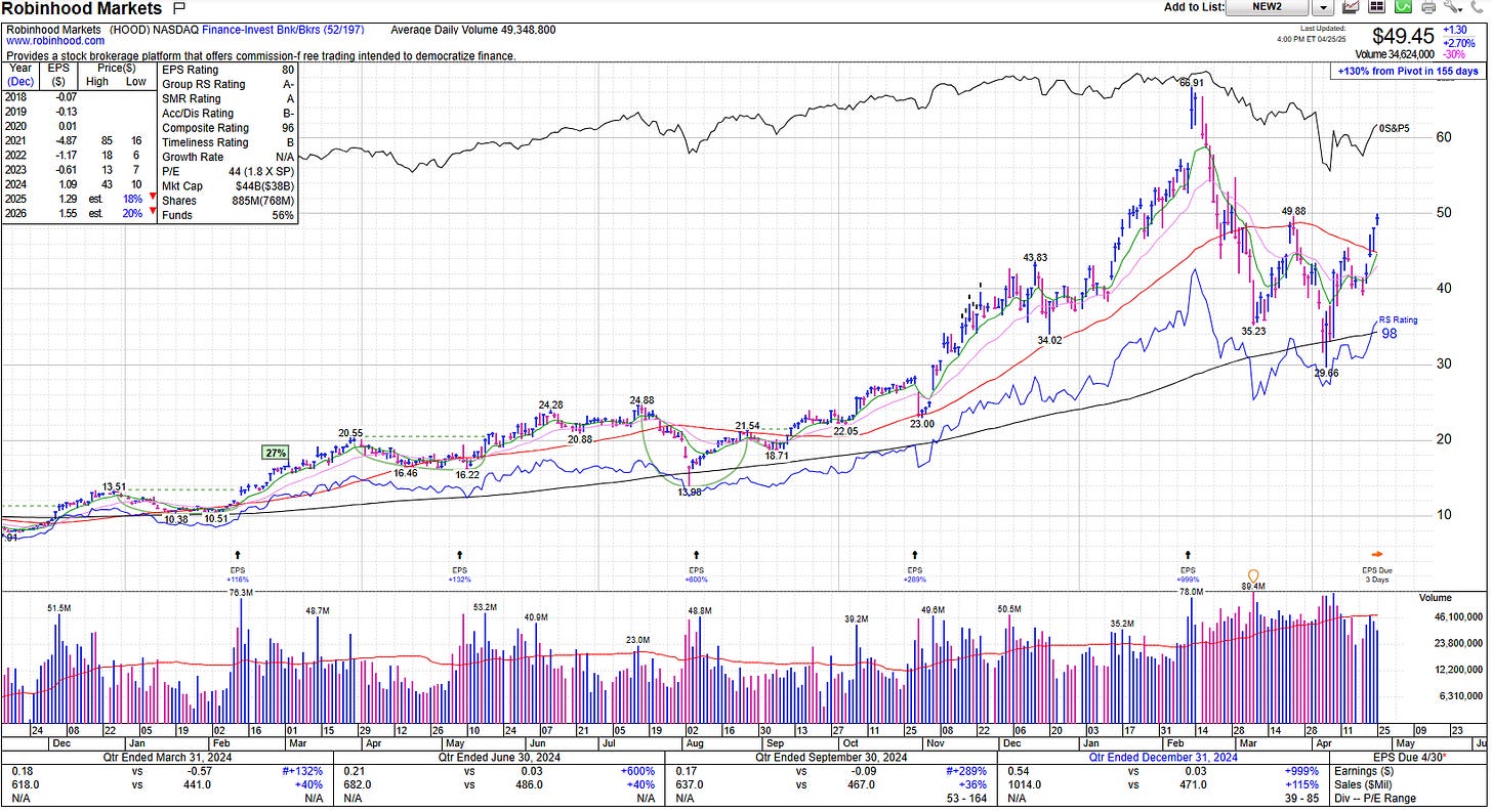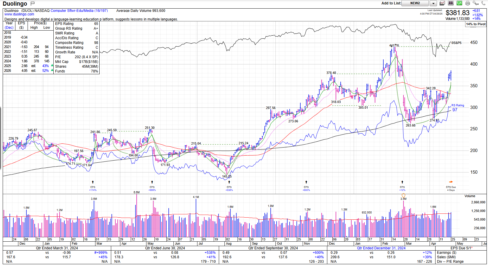 I was highly anticipating a bounce from a very oversold condition with such bearish sentiment. Once the FTD was confirmed on April 22nd followed by TSLA earnings that Tuesday evening, I noticed an important change of character after a dismal earnings report, the stock actually rallied after hours. When bad news starts to get faded, especially in corrections/bear markets, its often bullish as stocks have already discounted that news. Going into Wednesday, I was pretty aggressive in getting invested and became fully invested by Thursday. My main focus list was NFLX PLTR CRWD SPOT. However, I didn’t like how SPOT was acting, especially before earnings, so I kicked that name out for a small gain. I also trimmed some of my positions on Friday after great moves, taking profits to finance overnight risk, especially with potential headline volatility over the weekend. As of Week 17, my portfolio was evenly concentrated in NFLX PLTR CRWD.