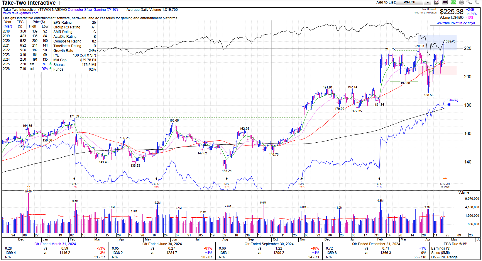 TTWO was a name I was also watching but I took SPOT instead… with TTWO having such a nice breakout into new all time highs its now my number 1 idea on a pullback (if it allows).
