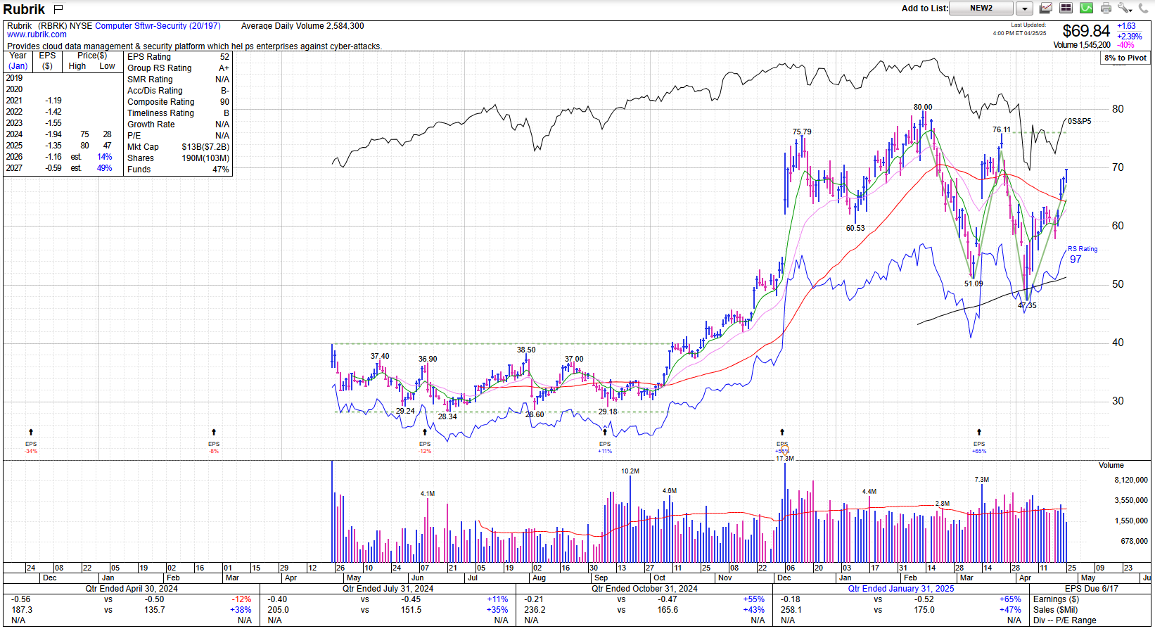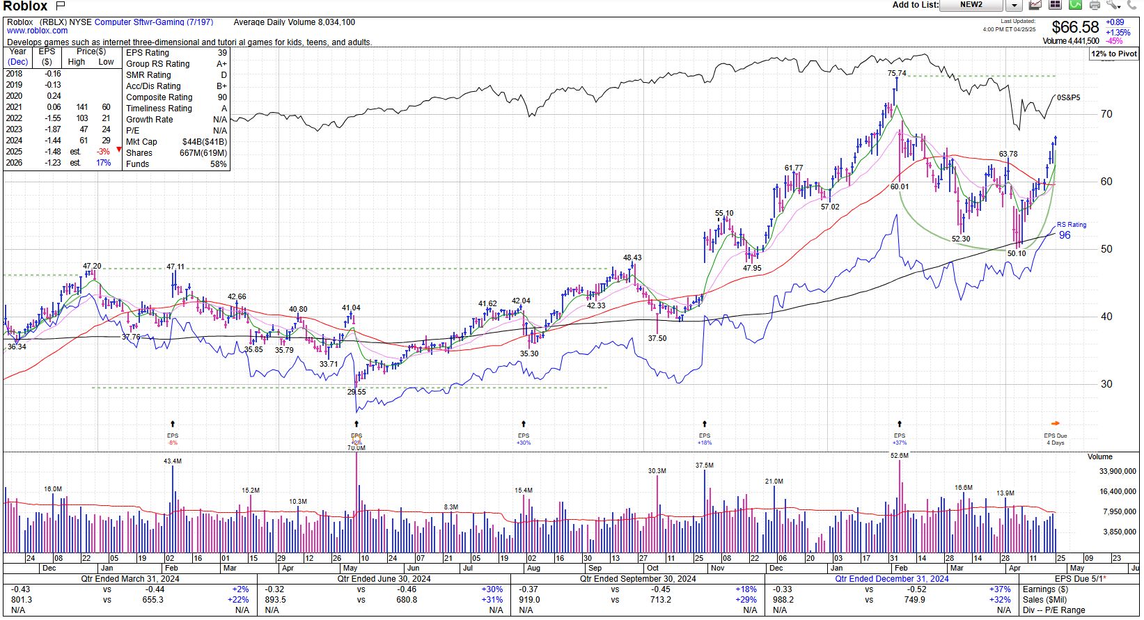 SPOT still looks good and constructive. What I did not like was the day after the FTD it didn’t hold its gap up and closed near the low of the day (no cushion to hold overnight). The following day it was unable to take out the previous days high but an inside day nonetheless. Nice action on Friday but closed below the HVC from its last earnings report. Earnings also out on Tuesday so would not be able to get enough cushion to hold through earnings. Watching to see reaction to earnings.
