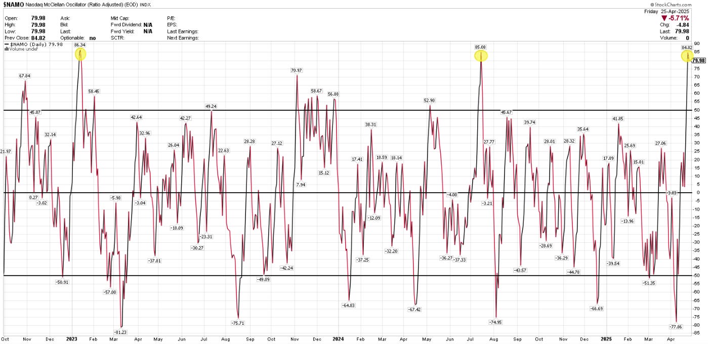 Also important to note that the McClellan oscillator is very overbought. The most recent readings near +85 occurred below, which also supports a pullback (regardless of market direction thereafter).
