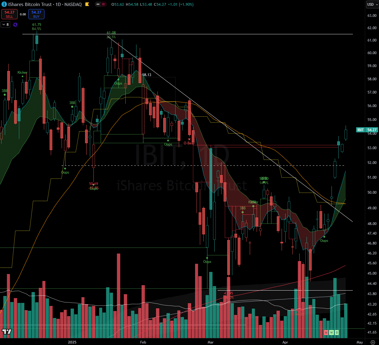 Bitcoin broke out the day before the FTD and I just wasn’t in the mindset for new buys and so I just watched this one. After the FTD, as it had already broken out, IBIT didn’t really give me a low risk spot where I could get long. Will watch to see if it sets up again.