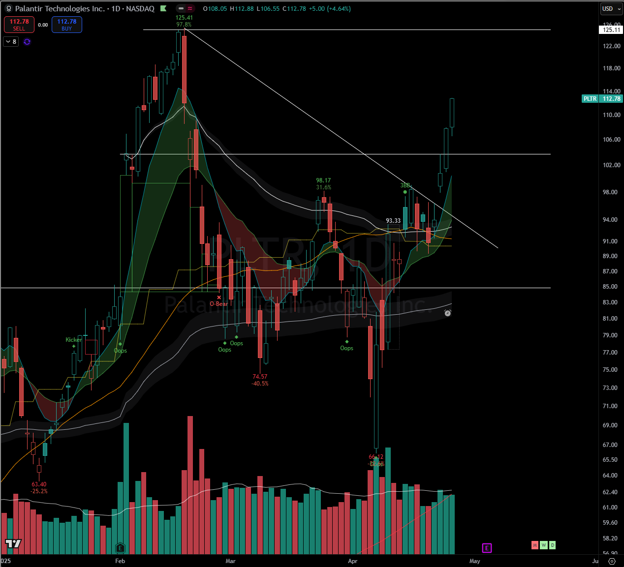 PLTR really nice breakout, watching all time high level of ~$125 for potential resistance. Earnings Monday May 5th.